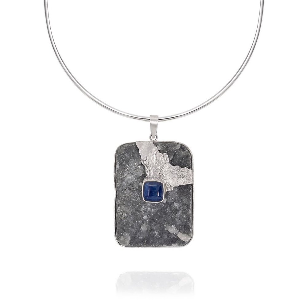 Gargantilla 3mm plata, calcedonia y piedra central cianita.