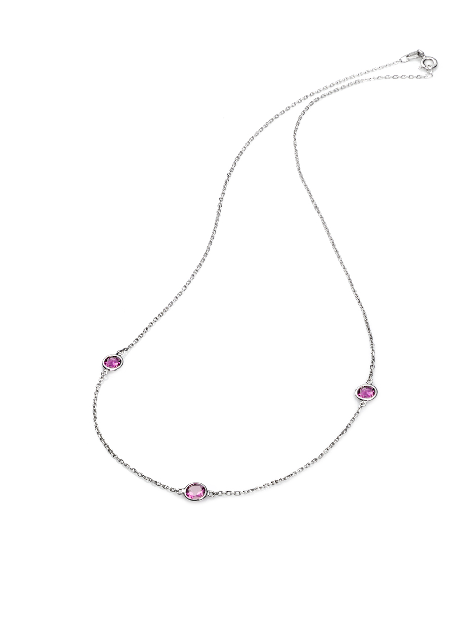 Colgante gargantilla oro blanco con tres turmalinas rosas ,montadas en cadena de oro blanco 18kt(42cms)